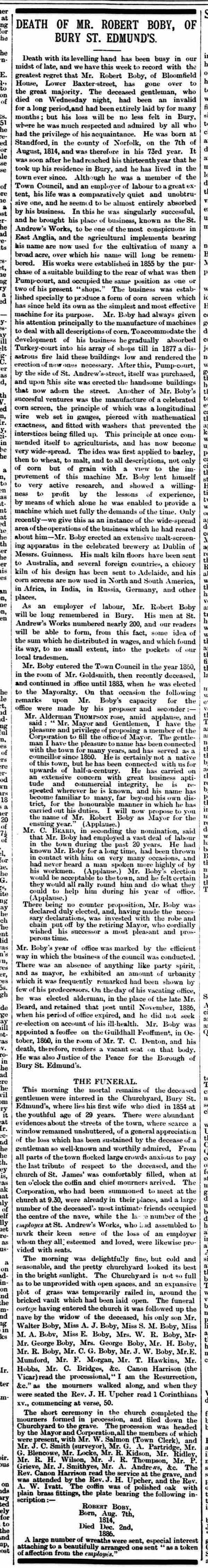 Robert Boby was a prominent citizen of Bury at this time, as shown by the following newspaper item.