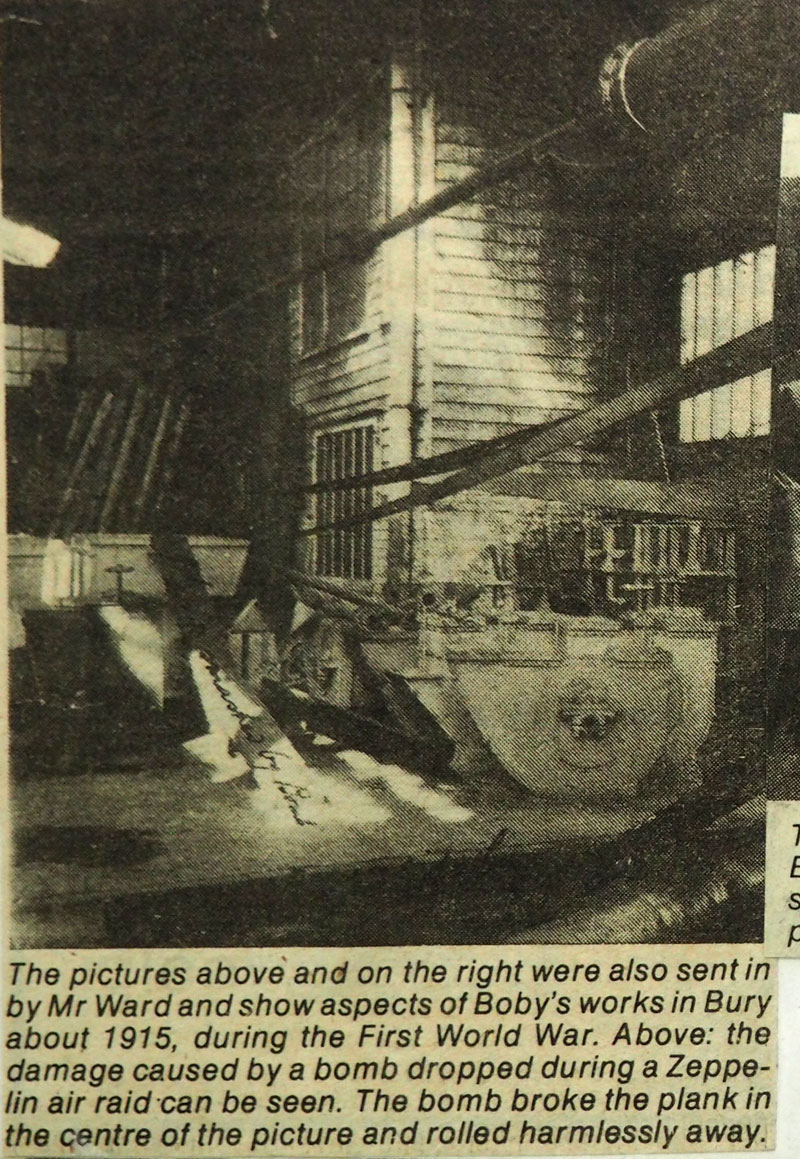 Bury's engineering heritage took a severe blow in 1971 when the Robert Boby works in St Andrews Street was closed down. It had been owned by Vickers since 1927, and was still the biggest factory in Bury. Some 270 men were put out of work, but many Bury people still remember friends or relatives who worked there. Many local men did engineering apprenticeships at Boby's, even if they now live far away.
