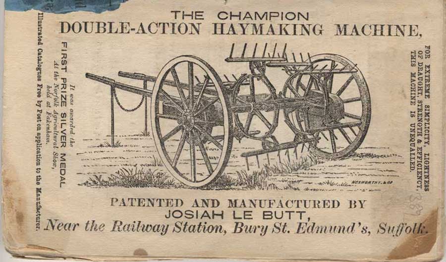 At the Chelmsford Royal Show of 1856, the Corn Dressing and Winnowing Machine built in Bury St Edmunds won a Gold Medal.