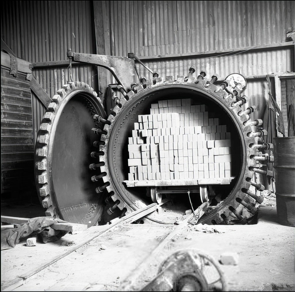The Baron Barreto, who owned the Brickworks held a patent for ovens ‘made in the form of an arch or tunnel of metal plates lined with brickwork, through which trucks carrying the bricks to be treated are run on rails. Steam is applied through perforated pipes.’
