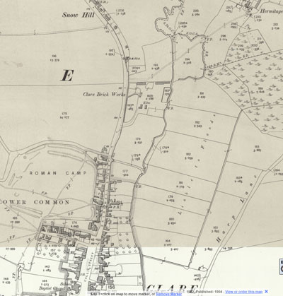 This map shows that the brickworks stands on what is now called Bridewell Street, up to Snow Hill. |