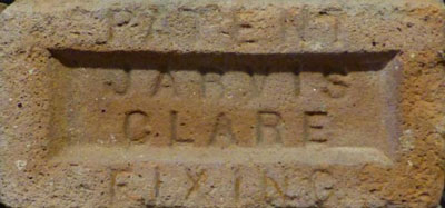 This sample of a brick by W G Jarvis's Clare works is courtesy of Martyn Fretwell. |