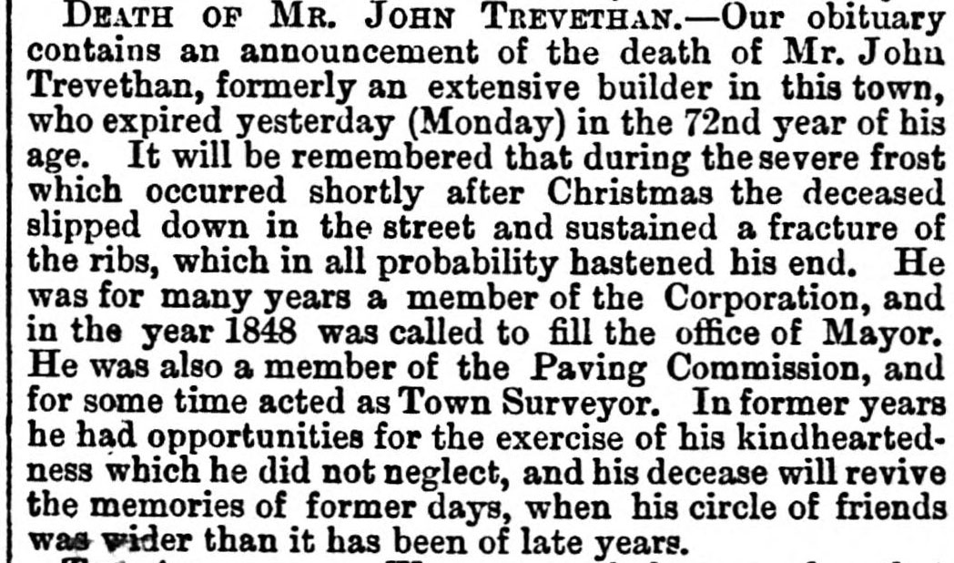 Payne's survey of the town included the facts that John Trevethan also had two hothouses and a melon ground as well as his brick kiln at this location.