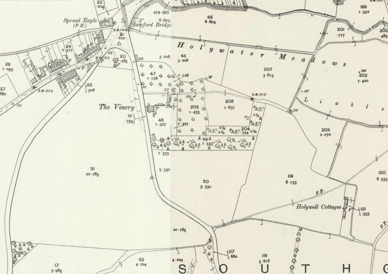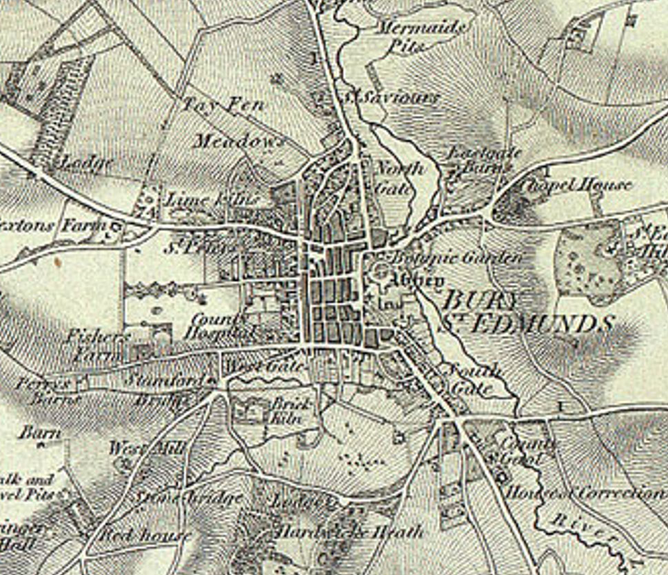 In the early 19th century Vinery Road was known as Stamford Bridge Road, as shown on Payne's map of Bury St Edmunds, dated 1834, based upon his written survey carried out in 1833.