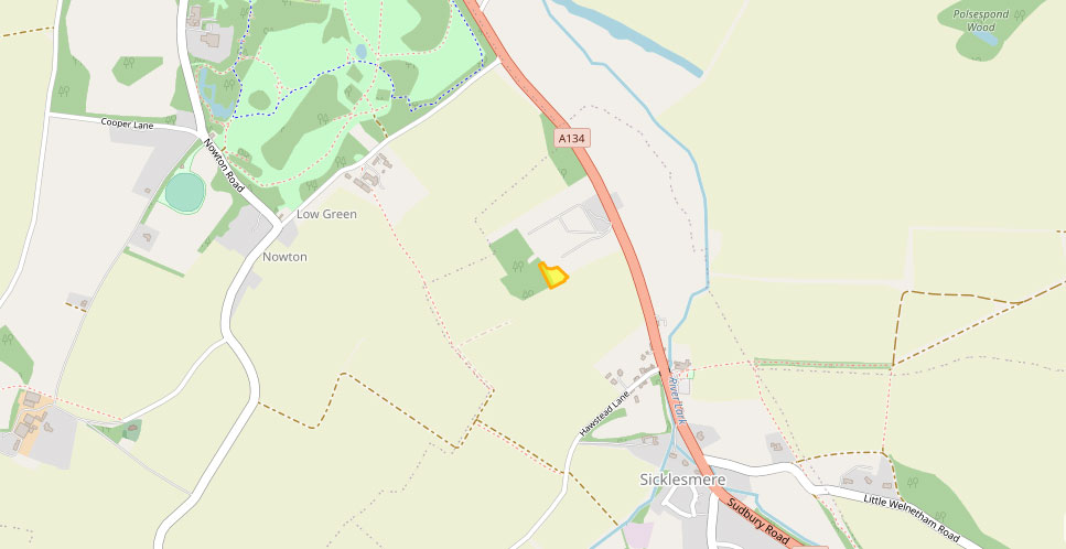 The sites of these pits and kilns are off the A134, Sudbury Road, between Bury St Edmunds and Sicklesmere.