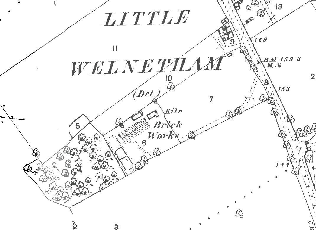 The 1885/6 OS map illustrated here, clearly labels the area as Little Welnetham, but we do not acknowledge that name with the brickworks location.