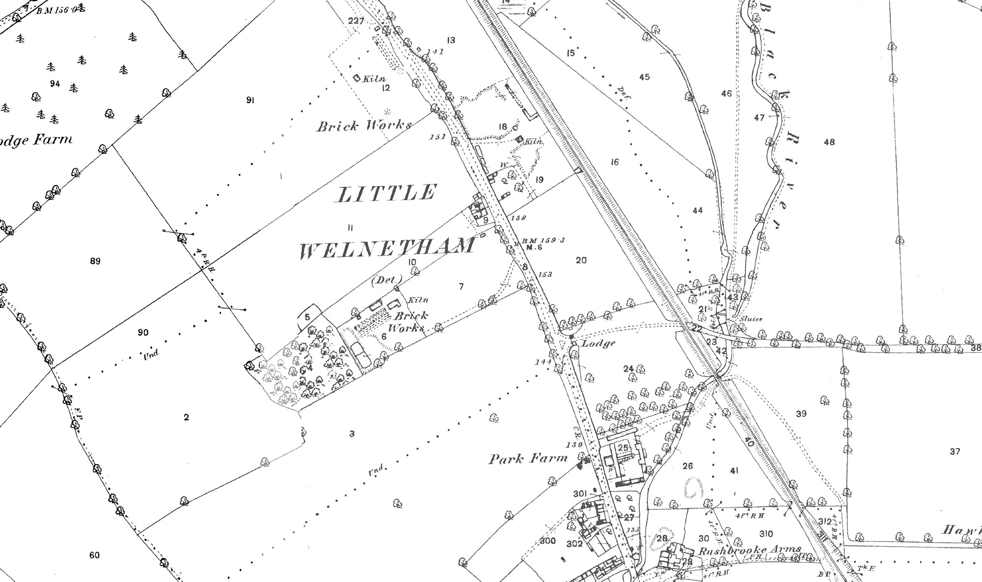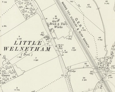 The 1885/6 OS map illustrated here, clearly labels the area as Little Welnetham, but we do not acknowledge that name with the brickworks location.