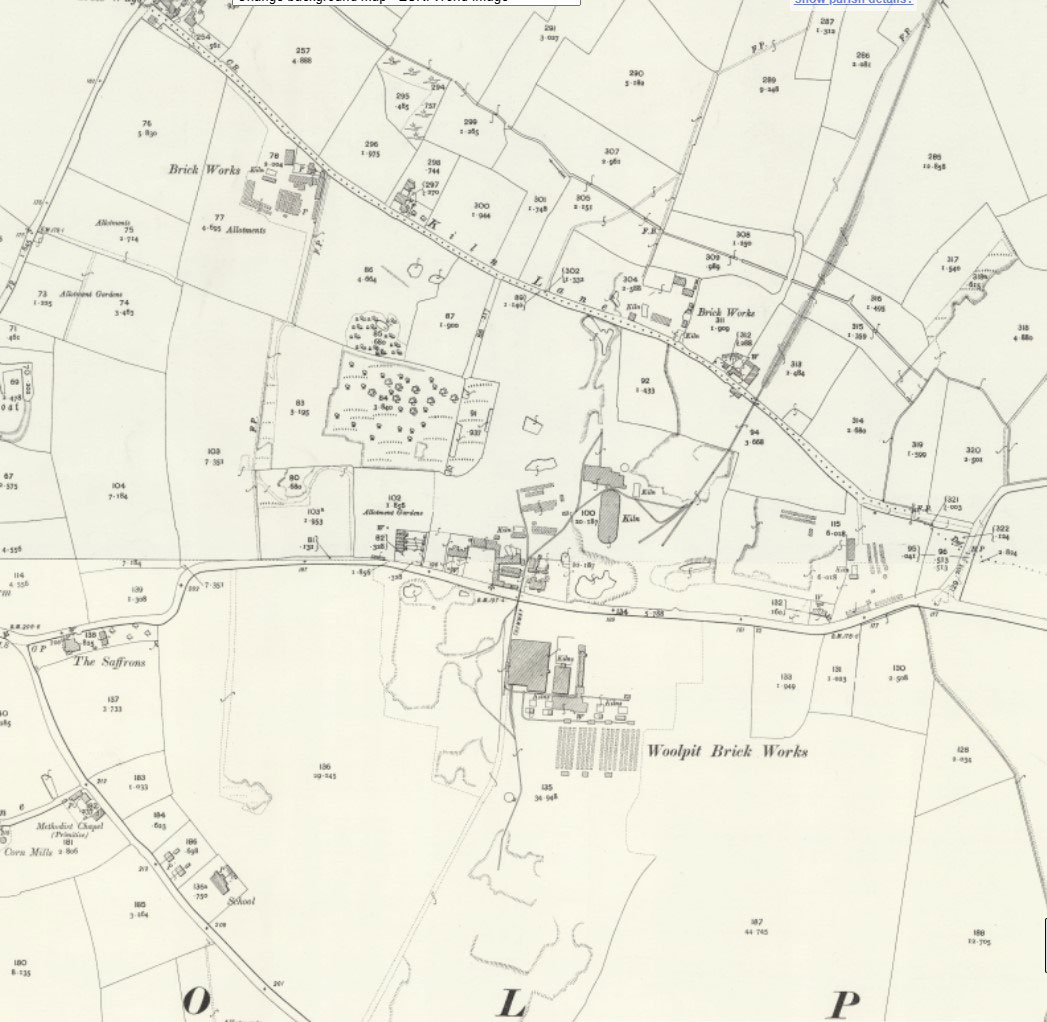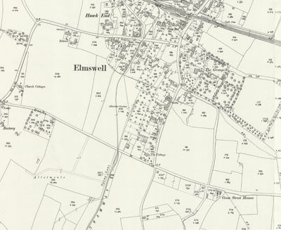 The second map shows the Woolpit scene by 1904, when the rail link to Elmswell station had been established. A railway line from Ipswich to Bury St Edmunds had existed since 1846 and a station was built on this line at Elmswell.