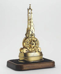 A less elaborate clock by Pace sold for £540 at Bonham's sale in September 2005. This was not numbered but was mounted on a signed oval base with shaped edge on a further plinth base, together with a later perspex protective cover 23cms. (9ins.) high. In 1851 John Pace exhibited at the Great Exhibition held at Crystal Palace in 1851. Page 419 of the Exhibition Catalogue refers to "Pace, J. Bury St Edmunds, - Inventor, Designer and Manufacturer". He showed two clocks and a barometer, as follows: