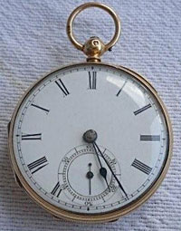 The second Warren watch is a picture taken from an auction sale on Worthpoint. The auction entry said it was dated around 1835, with a number in the 7000s, after Warren shifted from verge to lever movements. It is obviously of less fine workmanship than the first watch, which might suggest it is a bought-in factory made piece, to which Warren added his name. Joseph Warren also dealt in old coins and antiquities. He kept good notes of those items which passed through his hands, and it was Warren who recognised, and published his account of, the Anglo-Saxon pendant known as the Ixworth Cross in 1856.