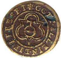 Nationally there was a problem with counterfeit small change. Another reason existed for the rise of this "provincial coinage.". The large cities often had an abundance of coin. Most of it was “bad” coin, but at least it existed. The small towns out in the “provinces” were often completely without coin.