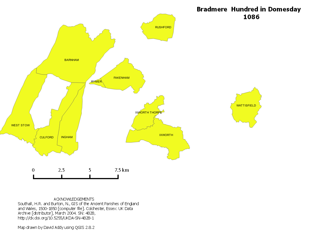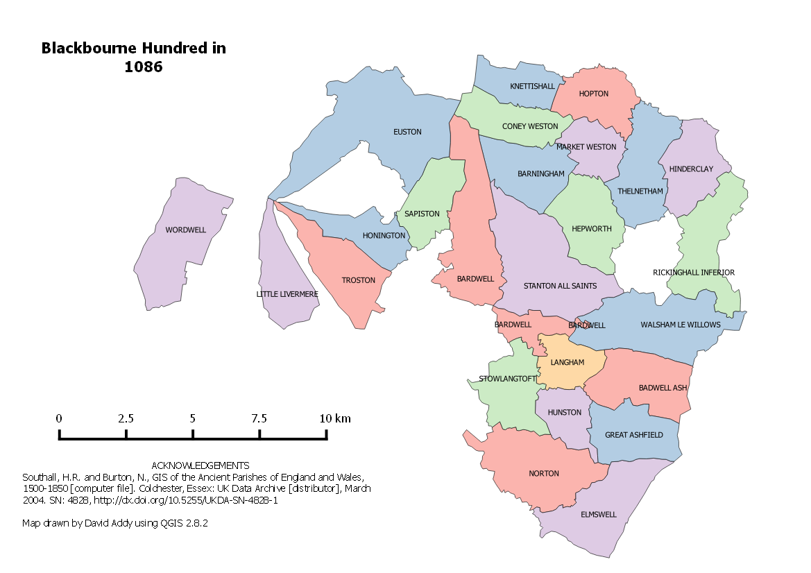 - Exning was part of Cambridgeshire in 1086, but is here shown as an outlier of Lackford, which occurred in the 12th century;