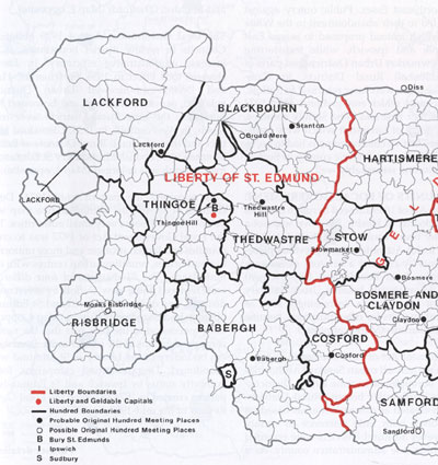 - Bury St Edmunds itself must once have been part of Thingoe Hundred, but by 1086 it is apparently a separate unspecified unit.