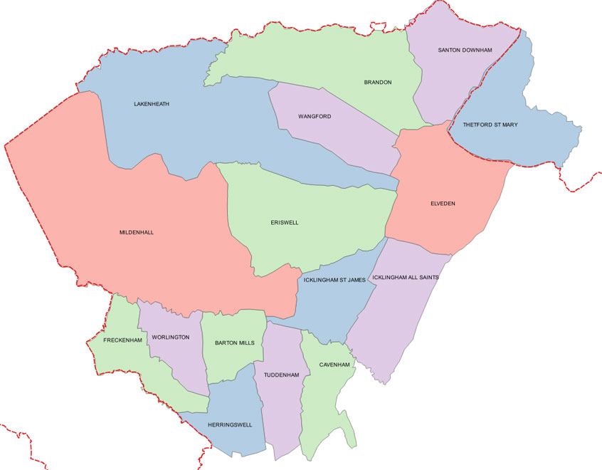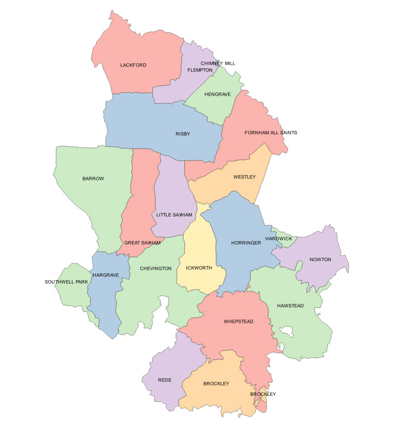 "On the Norfolk border, N. of Thedwestry and Thingoe hundreds and East of Lackford hd, including in the west the pars of Barnham and West Stow.