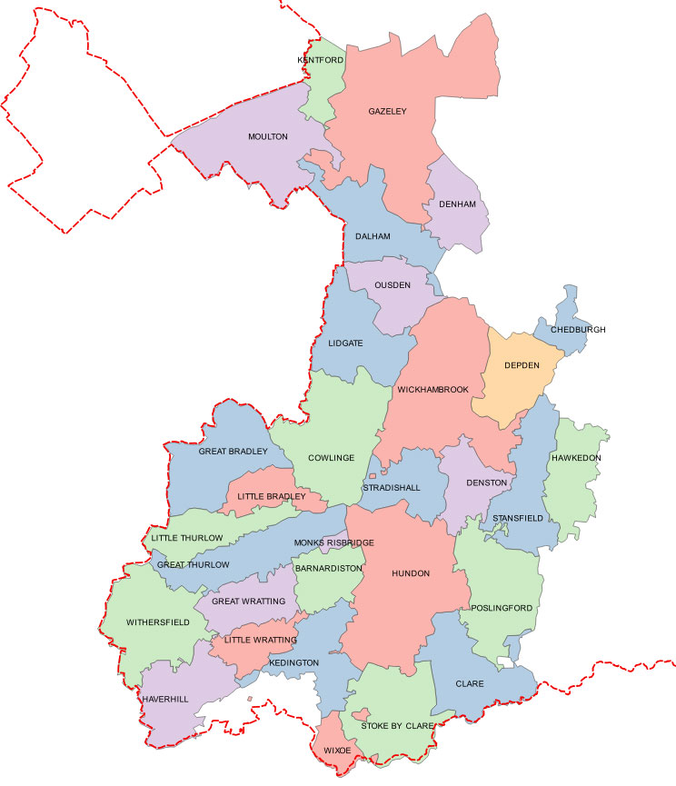 " In the SW. corner of the county, W. of Babergh and Thingoe hds, including in the north the pars of Moulton, Kentford, Gazeley and Higham and in the east those of Denham, Ousden, Depden, Chedbnrgh, Hawkedon, Poslingford and Clare.