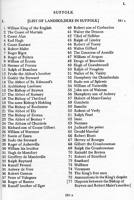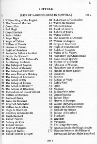 As we shall see below, the layout of the Suffolk volume of Domesday is rather different from the standard in the order of Landholders, giving undue precedence to certain nobles, and to the Abbot of St Edmunds'.