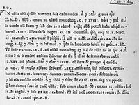 Of this land Walter holds 40 acres from the abbot. Then as now 37 villans. Then 25 bordars and now 10. Then 8 ploughs in demesne, now 6. Then 20 ploughs belonging to the men, now 13. Then as now 16 slaves. 50 acres of meadow. Woodland for 60 pigs. 2 mills. Now 3 horses. Then as now 30 head of cattle. Now 300 sheep. Then as now 140 pigs. Now 12 [bee]hives. 40 wild horses now. 2 sokemen with 80 acres of land. The same Walter held one from the abbot with 40 acres. Then as now 2 ploughs. Over these men St [Edmund] has commendation and sake and soke and every customary due and they could never give and sell their lands without the abbot's full consent. A church with 2 carucates of land. 4 villans. 9 bordars. Then as now 2 ploughs belonging to the church. Then as now 2 ploughs belonging to the men. Then this manor was worth £20, now £30. It is 18 furlongs long and 1 league broad. In geld 20½d whoever holds [land] there.