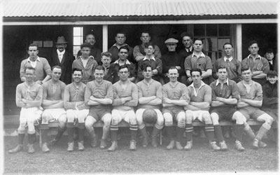 This is a postcard of the Fire Brigade football team of 1935 taken at the Victory ground as described on reverse of postcard. I think that A Place is the young man sitting in the front row, five from the left. |
