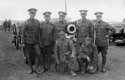 Nothing to suggest where this is, but I believe our man is standing second from the left. I think the unit is the Royal Artillery Territorial Army. |