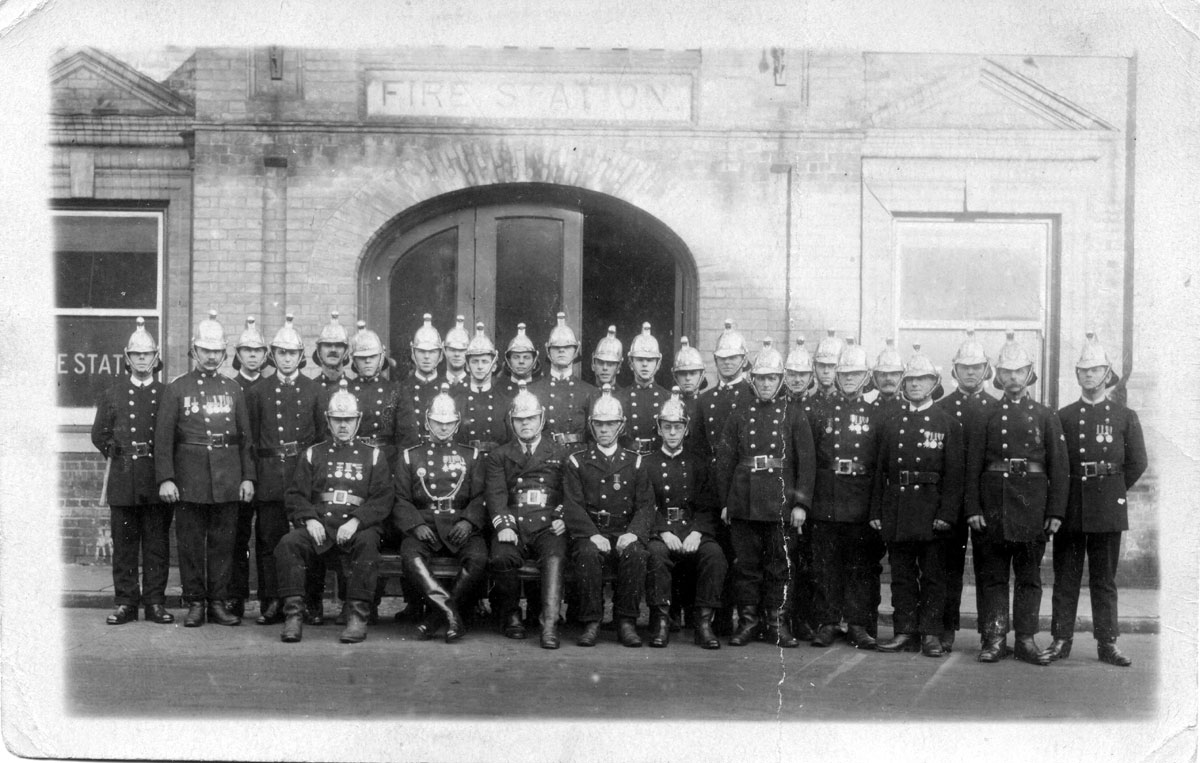 Members of the Fire Brigade outside the Cornhill Station in 1931. I am not sure whether our man is in this picture. If he is, he may be the man standing back row far left. |