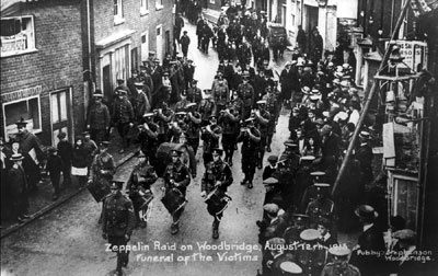 Woodbridge suffered six fatalities in the 1915 Zeppelin raid. This picture shows the funeral procession.