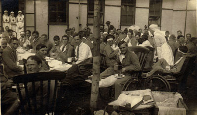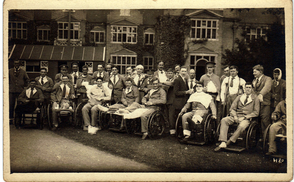 Casualties at Ampton Hall, George Arthur Ward, Christmas Eve 1916. The white lapels of 'hospital blues' can be clearly seen. |
