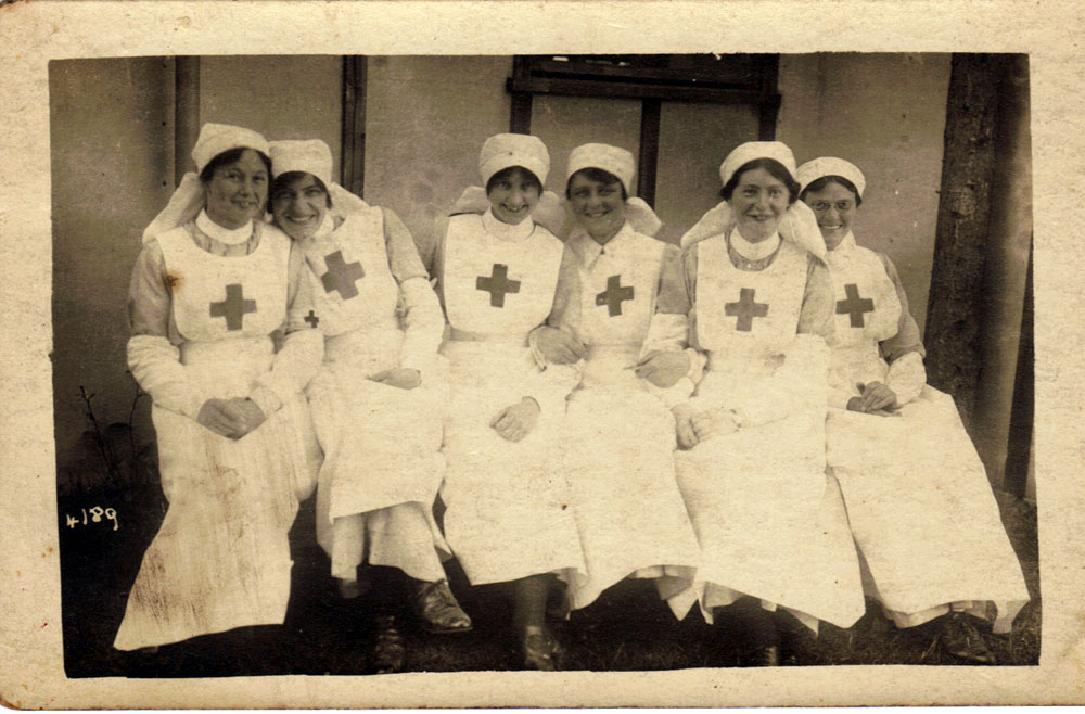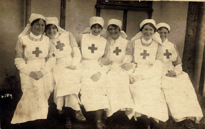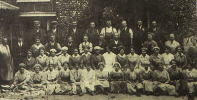 Some of the nurses at Ampton Hall hospital. Large numbers of casualties returned from the Front required new hospitals and large numbers of nurses to staff them. The Voluntary Aid Detachment (VAD) was a voluntary organisation providing field nursing services, mainly in hospitals, in the United Kingdom. (Gerald Brown collection.)