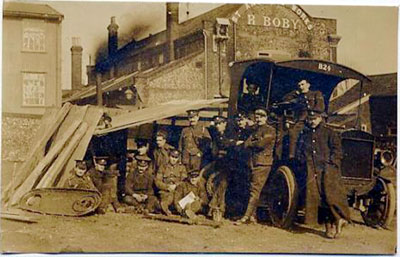 Following the death of Robert Boby in 1886, other family members had continued to run the business. In the Great War the factory turned to munitions production. Here we see one of Boby's lorries at St Andrews Ironworks together with soldiers thought to be Army Service Corps, 259 Company. If so, this company was raised in February 1915, as part of the 15th Scottish Division. (Postcard sold on EBay for £62 June, 2014.) |
