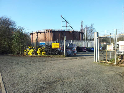 This picture shows the gasholder still in use as part of the natural gas national grid in the early years of the 21st century. It would continue in use until decommissioned in 2011. |