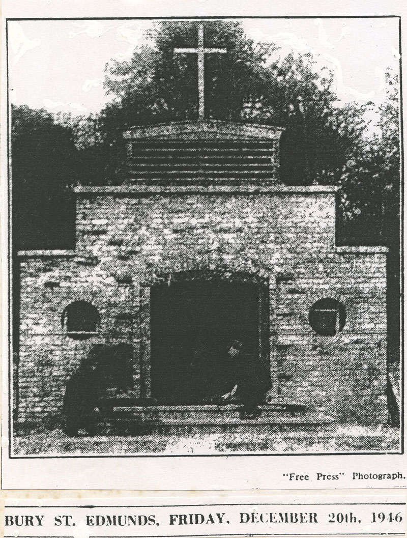 On 13th May the Bury Free Press reported the re-opening of the chapel at Hardwick Camp for the use of the residents. The Revd. A C Pelly of St Mary's church presided over the ceremony. Hardwick Camp with 35-40 families needed its own "parish" church said Mr Pelly. Repairing the derelict chapel cost £6 and 5/- a week was needed for its rent. It would be run on multi-denominational grounds and donations were made by the Congregationalists, Methodists and Baptists as well as St Mary's church. Mr Woodhouse, chairman of the camp ratepayers association thanked all concerned for their voluntary efforts.