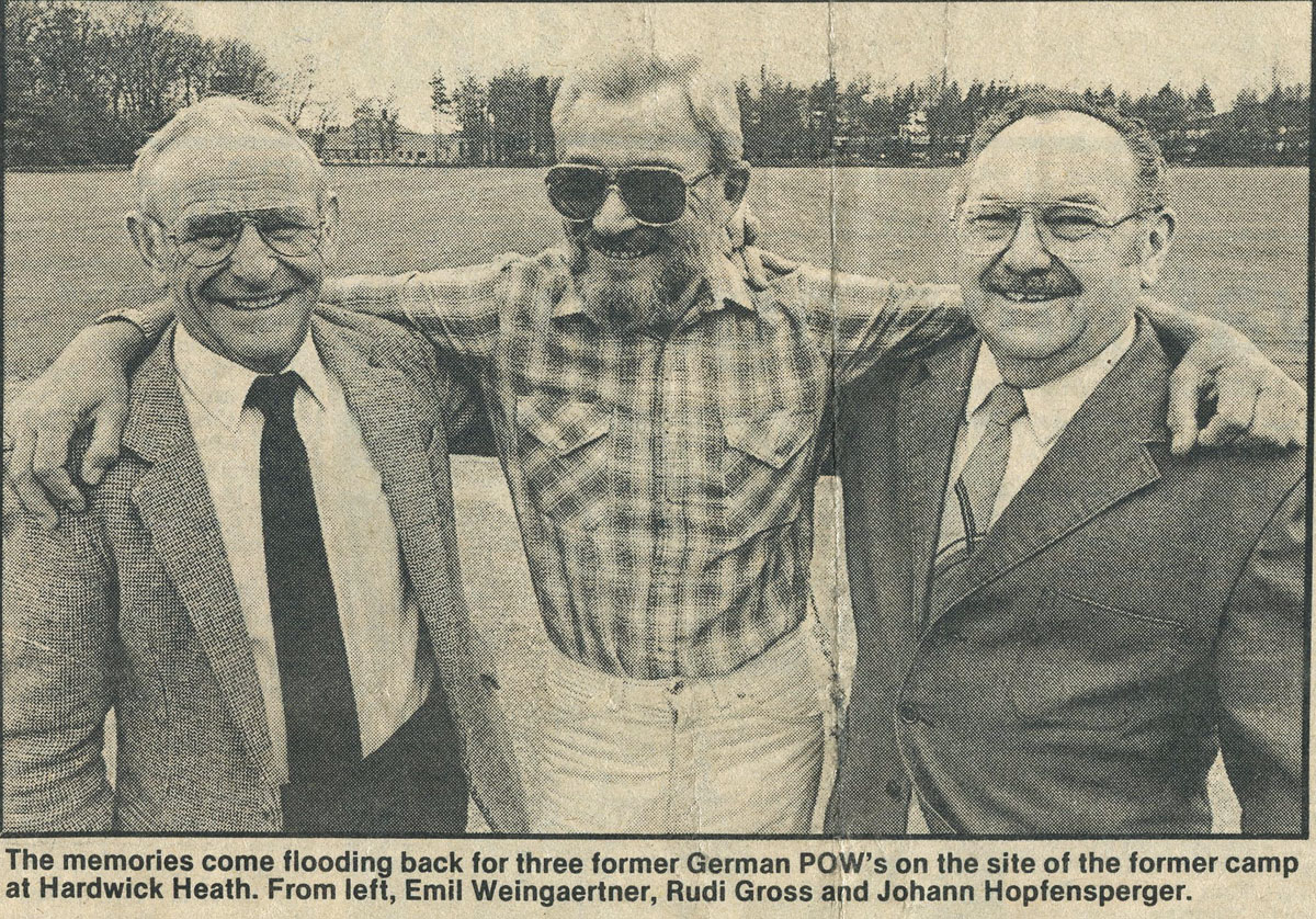 On May 8th, 1987 the Bury Free Press published a feature entitled, "Behind the wire" describing the life of wartime POWs at Hardwick Camp. Three former prisoners who had settled in Bury St Edmunds were asked for their recollections.