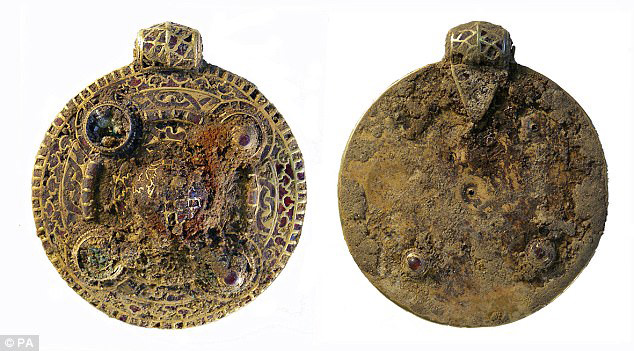 At lectures given at Sutton Hoo in July 2014, Dr Sam Lucy advanced our ideas about these crosses. Beginning with the Trumpington Cross, which is a modern and well recorded excavation, we find that the reverse of this cross contains small brackets which were used to sew the cross on to a garment at the neck. Gold and garnet link pins were also found by the head which were used to fasten a veil or headdress. This bed burial and associated jewellery is undoubtedly a female grave. This leads us to the possibility that all the bed burials so far discovered may well be female graves, and that these so-called pectoral crosses were not indicative of male bishops, but of high status Christian women, who themselves may have led a female religious community. The radio carbon dating obtained for the Trumpington body is from 665 to 680 AD. Re-examination of the illustrated iron fittings, described above as found with the Ixworth/Stanton Cross, has led to the conclusion that this was also a bed burial. Taken together with the associated fibula or brooch, it is easy to conclude that the grave occupant was most probably a woman. Where does this leave St Cuthbert's Cross? Cuthbert died in a hermit's cell on Inner Farne island on or about 20th March, 687 AD. It is immediately unlikely that such an ascetic would have worn a valuable jewel. The body was taken to Lindisfarne for burial. Even at Lindisfarne the grave was soon opened so that his body could be moved to a new resting place at the high altar in 698. In 875 the body was removed to avoid viking raids, and apparently it wandered for seven years until located at Chester Le Street, where King Aethelstan is recorded as visiting the shrine. He left valuable textiles to adorn the shrine. There was a further move to Ripon in 995, and a final move to Durham. At Durham the shrine was moved more than once until the great Norman cathedral was built by 1104. It seems quite probable that the cross was a gift from a female pilgrim, and could have been inserted into the coffin as early as the 690s. |