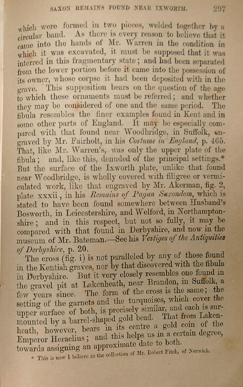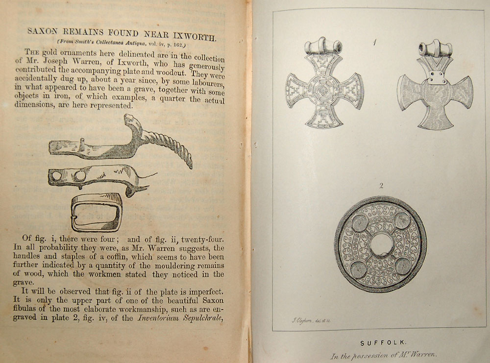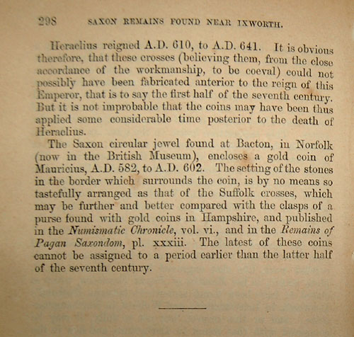 What follows is the published text of the Ixworth Cross, taken from the Journal of the Suffolk Institute of Archaeology, Volume III, pages 296 to 298. This volume was dated 1863, but this was, in fact, a reprint of a previous article published in Smith's magazine called Collecteana Antiqua, Volume 4, page 162 onwards. The publication date of this is unclear, but it must have been at least a year after the finds were made.