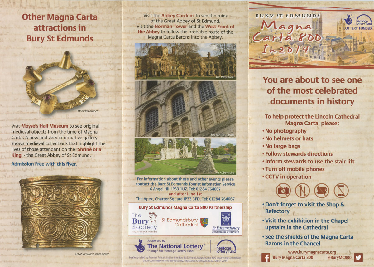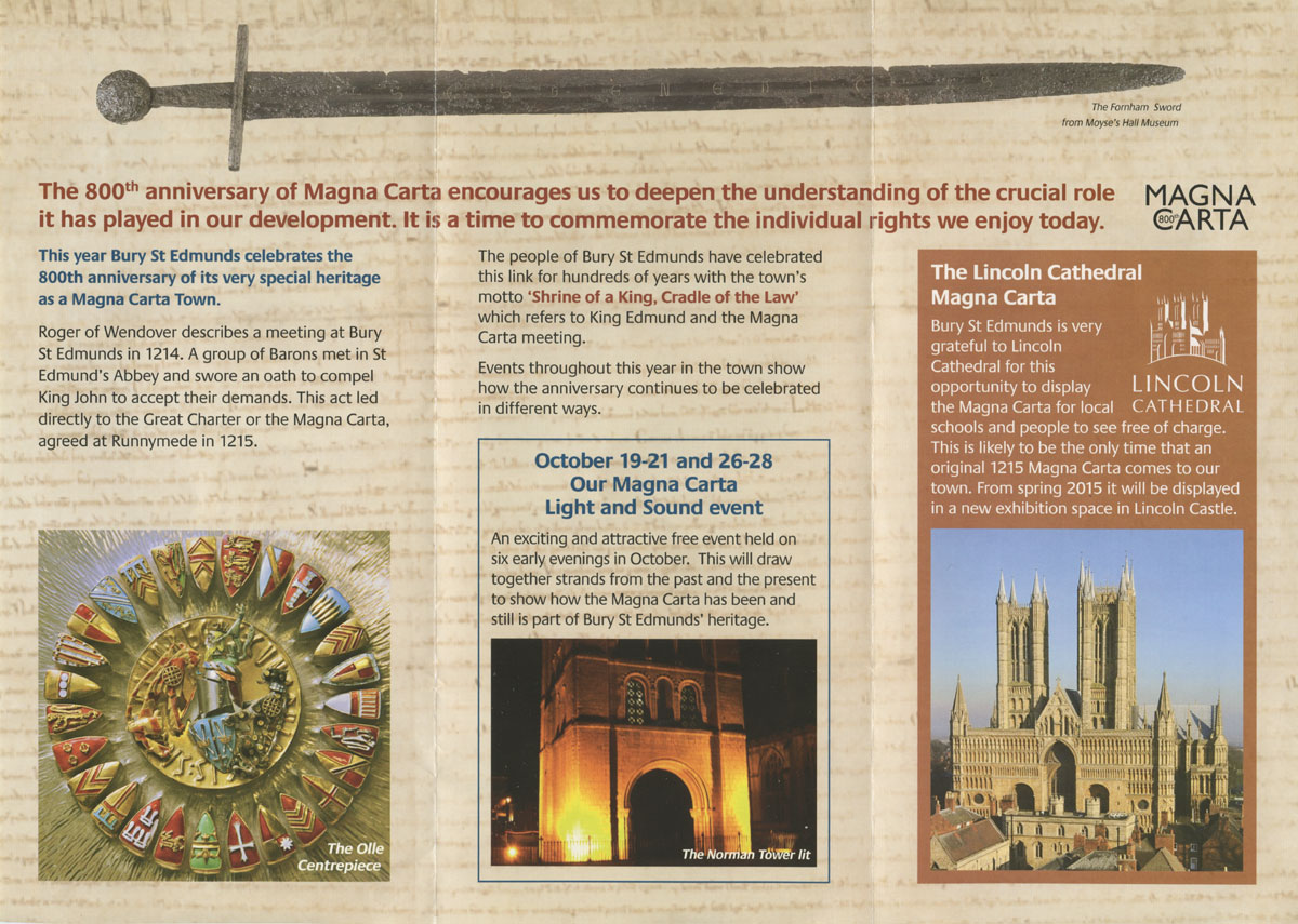"Magna Carta 800 in 2014" was a document prepared by the Bury St Edmunds Magna Carta 800 Partnership |