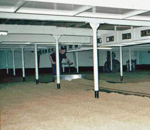 Steeps were still rectangular in shape but were constructed of cast iron and flat bottomed. Then, with the repeal of the Malt tax in 1880, self emptying hopper bottom steeps, also made of cast iron were introduced. Today, self-emptying steeps are of steel, and round as opposed to square in shape, with conical hopper bottoms.