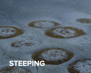 The steep water is changed several times during the steeping process, and the grain is rested for 8 and 12 hours between each wetting. This practise of resting the grain has not always been in operation, and until at least the 1820s it appears to have been more usual to allow the barley to remain in the water for the whole period of the steep, with out any rest periods or any change of water.