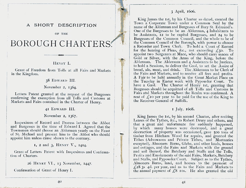 The King granted the Town a second Charter which dealt with Market rights and tolls. This Charter cost over £300 and the Feoffees agreed to finance this cost.