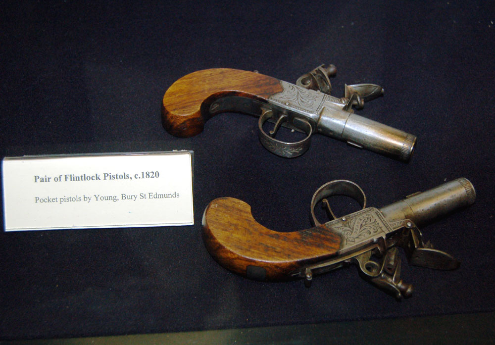 A pair of flintlock pocket pistols by Young of Bury St Edmunds c1840. |