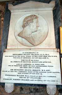 Benjamin Malkin Headmaster of the Grammar School 1809 to 1828 Plaque located in Cathedral Cloister |