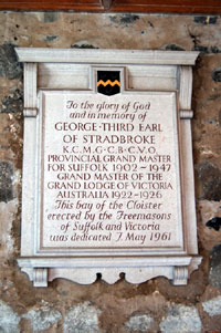 Lord Stradbroke A modern plaque from 1961 Plaque located in Cathedral Cloister |