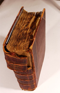 "In 2008 work began to give the pages a permanent housing but first we started by conserving the pages and photographs themselves. The edges of most pages had multiple tiny tears through handling; these were repaired with very thin Japanese tissue and any missing parts replaced with Japanese paper dyed to blend in. The tissue was pre-coated with adhesive to minimise the amount of moisture needed to adhere it which reduced the risk of bleeding of the moisture-sensitive ink, often present in captions near the page edges. Missing areas or whole pages were replaced with blank paper that generally matched the originals in colour and weight.