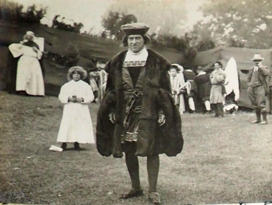 Along with many other photographers Walton Burrell took pictures of the Bury St Edmunds Pageant of 1907. He photographed several of the cast in their pageant costumes, including his Uncle Robert, shown here.