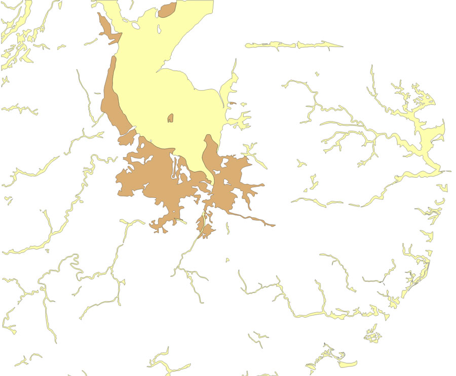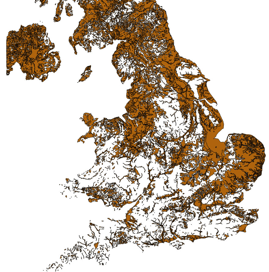 You should now see only areas of yellow alluvium and brown peat. Note that there is no clear coastline. In order to show the coast we will need to find another layer of coast, and a good source will be the OS OpenData Strategi file.