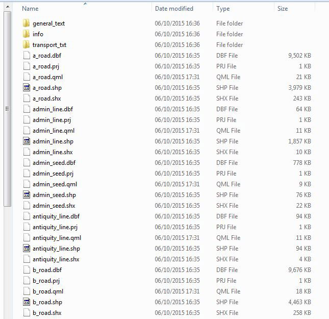 The OS Strategi file is comparatively simple to use because the data covers the whole country in one file. Maps on a larger scale are supplied in "Tiles", which are sections of the country, perhaps 100 km wide per tile. This means that you have the added complication of downloading those tiles which cover your area, and then unpacking each folder so that you can easily load the tiles together.
