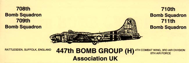 The 447th BG Association was formed in 1982, with a view to raising sufficient funds to erect a Memorial to the 447th Bomb Group. Additional members were collected along the way, and two years and £2,000 later, the Memorial was dedicated. An additional £2,000 was then raised to place in a Trust Fund for the future upkeep of the Memorial and following several years of negotiation, an agreement was reached with the American Battle Monuments Commission whereby they would take over the upkeep of the Memorial Site when the Association could no longer do so themselves. On legal advice, the Association applied for charitable status, which was achieved in 1991, and its Charity Registration is 100537. The Association continues to maintain a written and photographic record of the 447th Bomb Group's time at Rattlesden, and regularly stages Exhibitions for local organisations.
