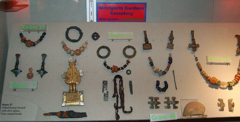 Grave goods from female burials at Westgarth Gardens graves 9 & 16 &48 & 52. |
