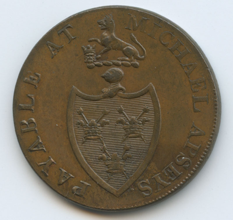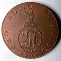 Edge inscription - "Value one penny at P. Decks Post Office Bury 1794" |