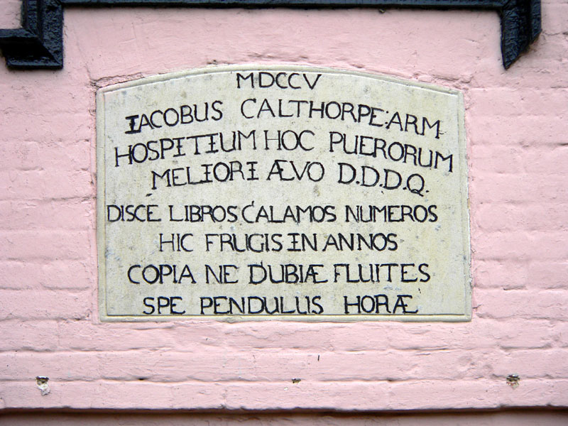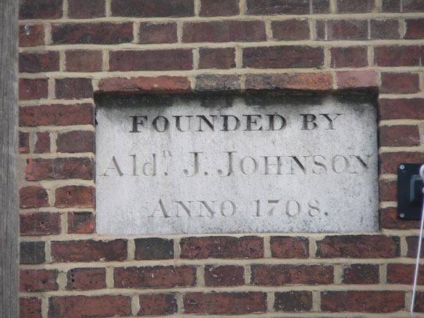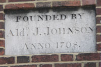 Founded by Alderman Jacob Johnson 1708 If original, this plaque would have stood in Looms Lane until 1839. The date 1708 was the founding of the original Charity in Johnson's will. |