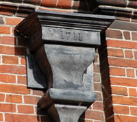 Plaque over door of old Grammar School in Northgate Street, dated 1664. The school moved to the Vinefields in 1883. |