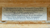 Plaque on Clopton's Asylum or Almshouse Now the Dean's House Commemorating Dr Poley Clopton, who died 1730 This plaque was carved by Thomas Singleton and erected c1750